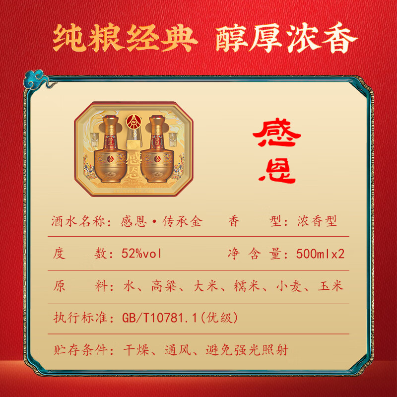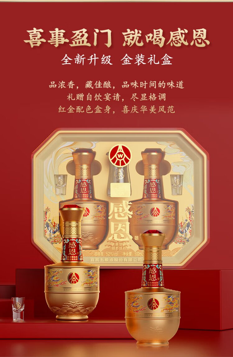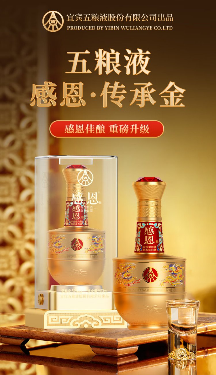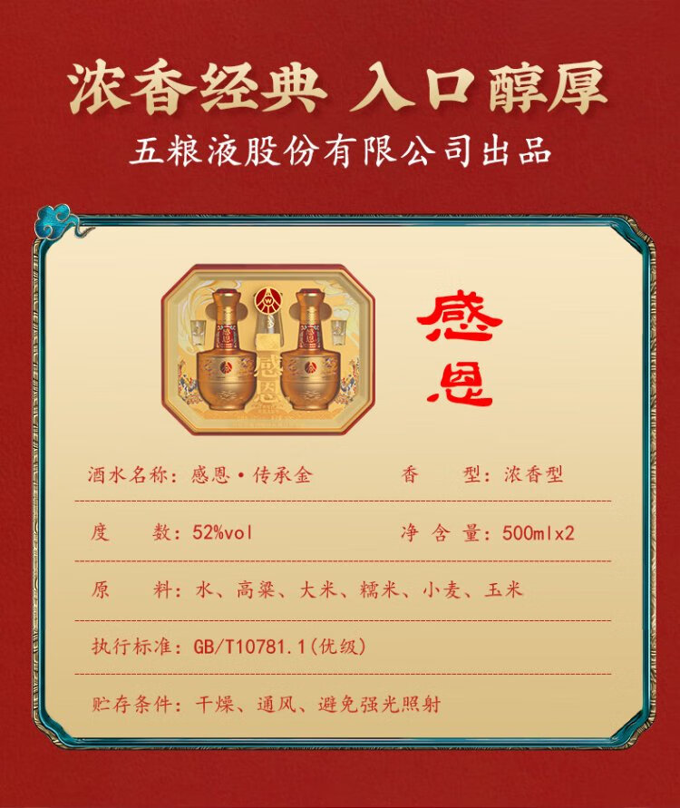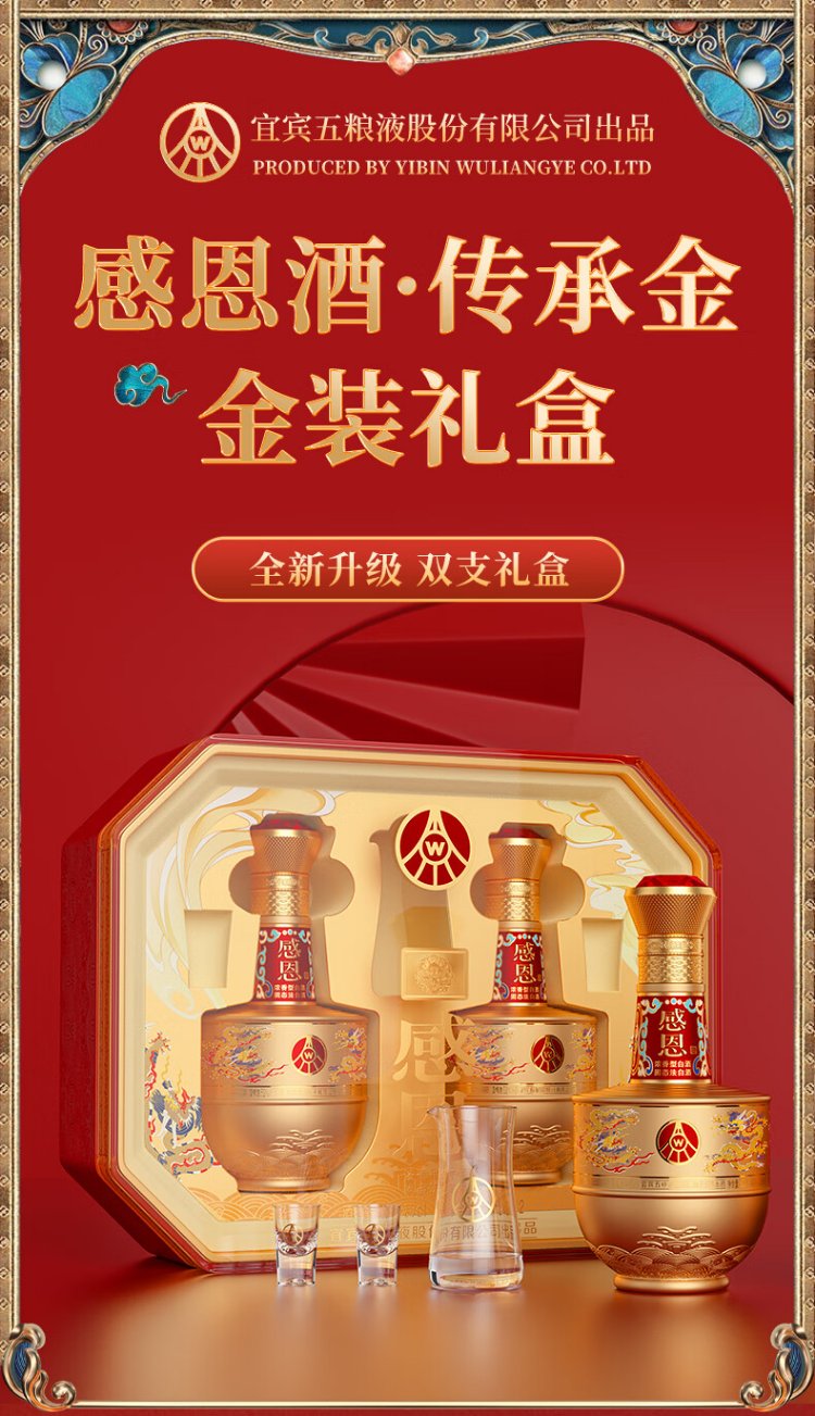 五粮股份感恩酒浓香型白酒52度500ml*2瓶礼盒装高端送礼纯粮白酒