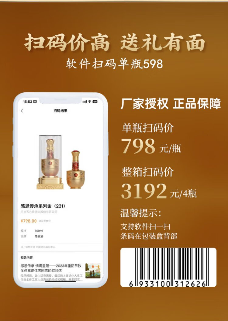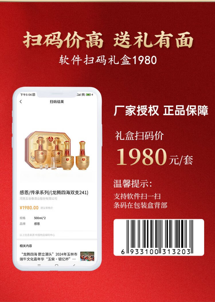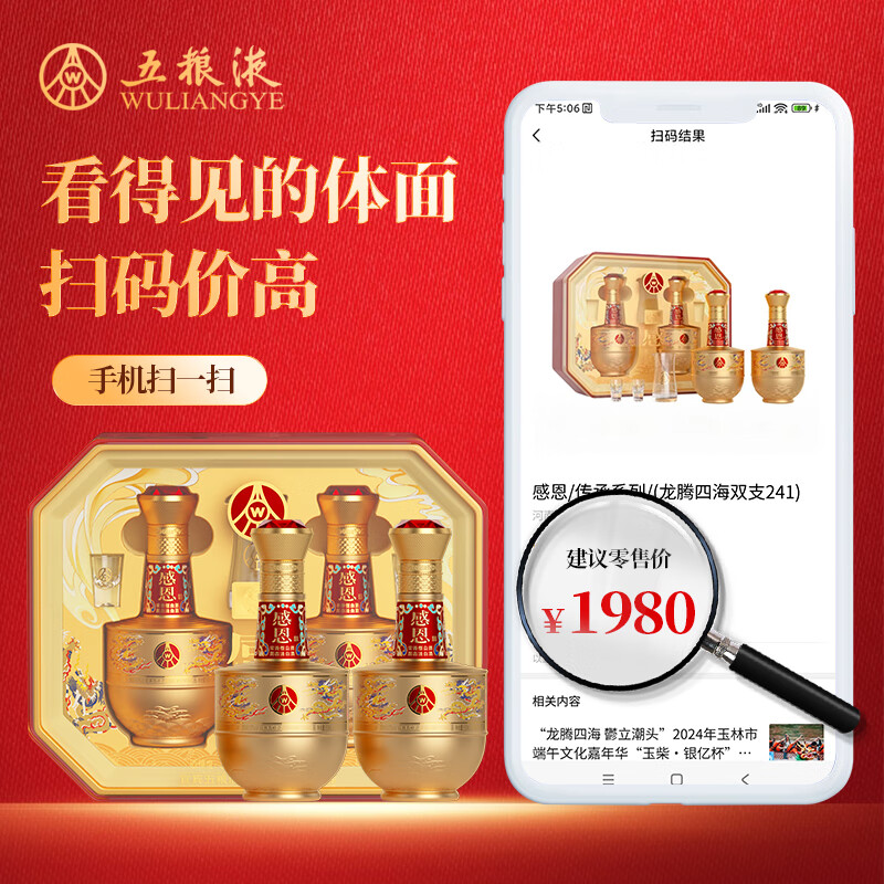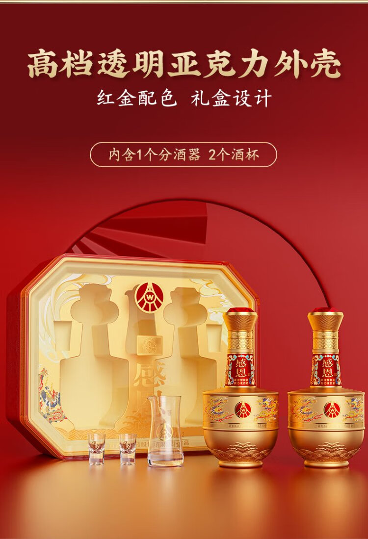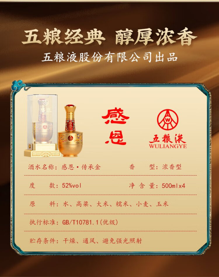 五粮股份感恩酒浓香型白酒52度500ml*2瓶礼盒装高端送礼纯粮白酒